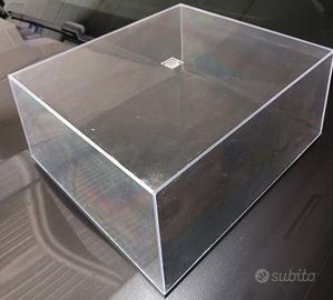 2 Teche in plexiglass trasparente, di qualità artigianali della EsseBiemme, non sono misure commerciali in quanto fatte su misura, con base nera, ottime per esporre modellini, sopramobili o oggetti da proteggere dalla polvere.