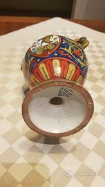 Il vaso è decorato con la tradizionale tecnica "a lustro" gualdese, che conferisce riflessi metallici.