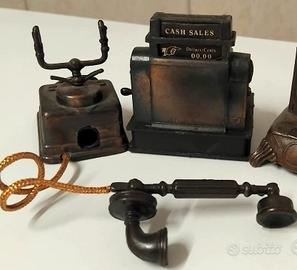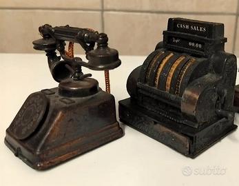 2 vecchi temperini in rame da collezione, molto in voga nei primissimi anni 80 ; il telefono è "Made in Hong Kong" e il registratore di cassa è "Made in China", molto belli e in buone condizioni .