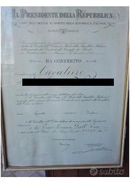 2 vecchie onorificenze una da Cavaliere della Repubblica Italiana e una da Ufficiale della Repubblica italiana del 1960 e del 1963 con cornice e in buone condizioni Prezzo 50 euro per entrambe No spedizione