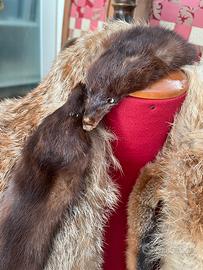 2 volpi rosse intere , una finita con occhi e pinza fermaglio, coda e zampe Veniva indossata attorno al collo