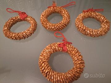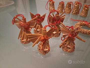 20 addobbi natalizi in paglia modellata a mano. Pigne, coroncine, angeli e campanelle.