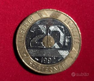 Moneta da 20 franchi francesi anno 1992, dritto il Mont Saint Michel , composizione trimetallico (rame, alluminio, nichel)