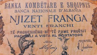 Banconota da 20 franchi durante l'occupazione italiana in Albania.