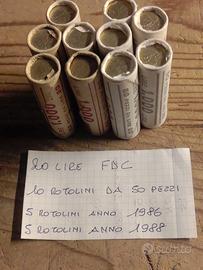 20 LIRE-1986-1988-FDC-10 ROTOLINI DA 50 PEZZI-FOTO