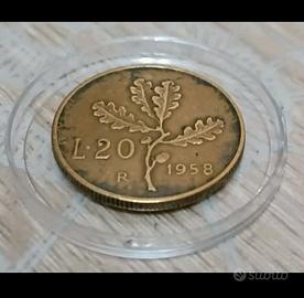 Vendo una moneta italiana autentica da 20 Lire del 1958, con bella patina originale.