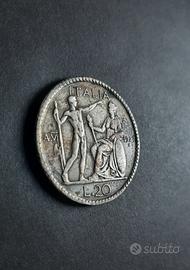 Moneta in argento da collezione, 20 lire littore 1927, zecca di Roma, A.VI, condizioni e conservazione come da foto. Illuminata solo da luce naturale.