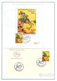 Si compone di ben 2 pagine, sono presenti: = 1 francobollo nuovo da Lire 800; = 1 cartolina affrancata con valore da Lire 800; = 1 busta primo giorno affrancata con valore da Lire 800; Peso: 52g. Prezzo 70,00 euro + Spese di spedizione. Vendo nello stato descritto e con formula visto, letto e piaciuto; per eventuali discordanze tra descrizione e foto fa fede la foto. Vendita solo in Italia. Consegna a mano o tramite Posta1 (tracciabile). Pagamento a mano c/o venditore o Bonifico Bancario. La spedizione verrà effettuata entro i 2 giorni lavorativi successivi alla ricezione del pagamento.