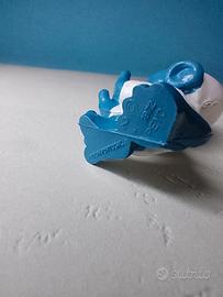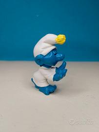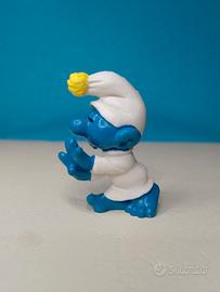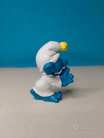 Puffo 20021, puffo sonnambulo, variante con PON PON giallo più rara. Puffo raro e fuori catalogo: made in Portugal Peyo 1972. Puffo non giocato e non esposto, in perfette condizioni, originale degli anni 70. Alla base del cappuccio microscopica imperfezione della plastica. Come tutti i puffi di questo modello.