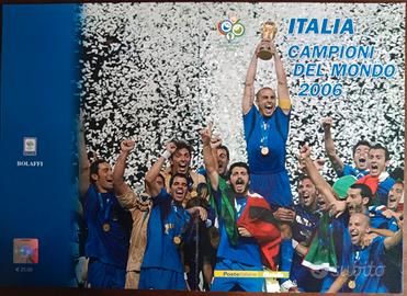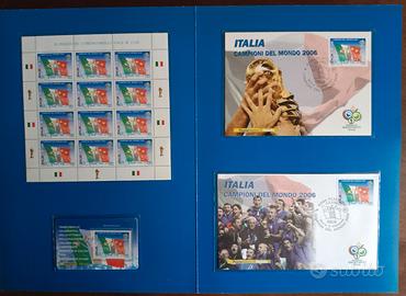 FOLDER: NAZIONALE ITALIANA vincitrice dei campionati mondiali di calcio "GERMANY 2006" all'interno FOGLIETTO di 12 valori n° 2 buste primo giorno emissione + tessera plastificata con francobollo di € 1,24