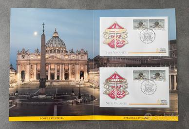 2025 Vaticano Folder Filatelico Sede Vacante Serie Completa su buste FDC. Spedizzione tracciabile per posta raccomandata standard.