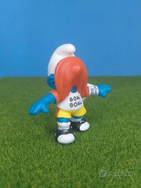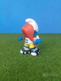 Puffo 20528, 2.0528 puffi: puffo goleador, puffo cannoniere, puffo che ha fatto gol, puffo che festeggia il gol, goal getter Smurf, della serie puffi calcio del 2004, stampato nel 2003. Puffo uscito ora dal suo sacchettino originale e dalla carta originale Schleich (questi tipi di puffi, in quel periodo, oltre che metterli nel sacchetto, venivano anche avvolti con la carta velina) ha il cartellino originale Schleich e quindi non è mai stato giocato o esposto. Non ci sono difetti di fabbrica, il puffo é perfetto adatto a collezionisti esigenti.