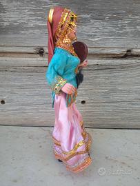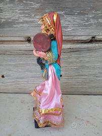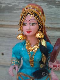Bambola da collezione Vintage realizzata e dipinta a mano, made in india, base in legno, rappresenta una donna con abiti tradizionali, alta circa 21cm...