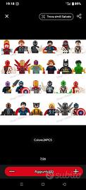 Salve come da foto set composto da 24 minifigure compatibili lego serie Avengers Marvel supereroi, nuovi sigillati da montare. ( in foto ne contate 22 ma sono 24). da scegliere tra due set con alcune minifigure diverse, foto 5 e 6, o spedisco in base a disponibilità. essendo nuovi sigillati non rispondo di nulla. presenti altri annunci compatibili lego varie tipologie per eventuale unica spedizione. consegna a mano a Istrana oppure spedizione con tutto subito. grazie