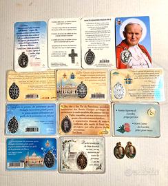 Vediamo la prima : Madonna nella grotta di LOURDES visita di GIOVANNI PAOLO II , in data sabato 14 agosto del 2004, plastificata con preghiera e medaglietta votiva.
