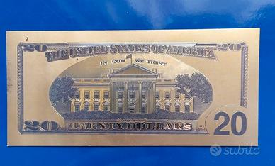 l prodotto è una banconota statunitense da 20 dollari, rivestita con una lamina placcata in oro 24 carati. Non è circolata né classificata, e non presenta alcuna certificazione. Questa valuta unica è stata progettata per diventare un famoso oggetto di curiosità, rendendola un pezzo prezioso e da collezione per gli appassionati di banconote rare.