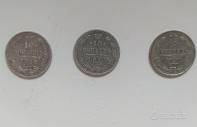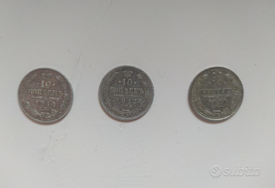 3 Antiche Monete autentiche d'argento fine Impero russo, inizi 900