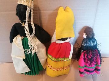 Vendo in blocco 3 Bambole Vintage anni 50 , 60 Complete di vestiti tipici, originali dell’epoca e rifiniti nei minimi dettagli Come da foto. 20 euro per tutte e 3 Alte 15 , 22 e 25 cm Prezzo ottimo e non trattabile. Posso spedire. Saluti.