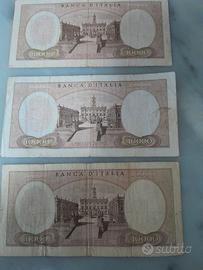 3 Banconote da 10.000 Lire Michelangelo 1. Decr. Min 8/8/1970 2. Decr. Min 8/8/1970 3. Decr. Min 15/12/1973. Una banconota presenta 2 forellini in alto a sinistra