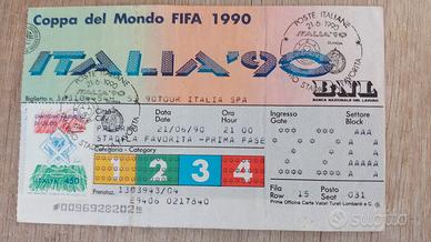 Per aumentare il valore, all'epoca su ciascun biglietto venne apposto un francobollo di Italia 90 con annulli speciali che riproducono la data e il nome della manifestazione e la partita.