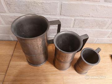 Set di 3 Antichi Boccali graduati in peltro.