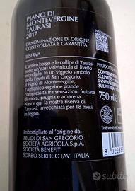 Lotto n.2 bottiglie di vino pregiato Taurasi Riserva DOCG "Piano di Montevergine" annata 2017, eccellenza della rinomata cantina Feudi di San Gregorio. 1 bottiglia El Coston Amarone della Valpolicella 2012 Ottima idea regalo per Pasqua: un vino di grande struttura e prestigio, perfetto da portare a tavola per il pranzo pasquale o da regalare a un appassionato di grandi rossi campani. Le bottiglie sono nuove, sigillate e in condizioni estetiche perfette (etichette e capsule immacolate). Il minimo prezzo della bottiglia in vendita é 35 euro (70€ per 2 bottiglie) 2X0,75L 14% vol. 100% Aglianico Affinamento Barrique: 24 mesi Bottiglia: min 30 mesi Colore rosso rubino carico. Al naso sensazioni fruttate di mora, prugna e amarena, note balsamiche, spezie. Al gusto è morbido, suadente, minerale ed equilibrato, con tannini eleganti e finale persistente.