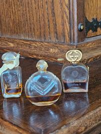 vendo in lotto 3 bottiglie di profumi mignon vintage rari . sono demi vuote, con il passare del tempo il profumo è evaporato. 1 Magie noire lancome 1 gucci parfum n. 1 1 caleche non hanno scatolo ho altri annunci simili, possibilità di spedizione unica