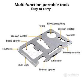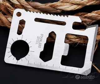 Set di tre coltellini multiuso in acciaio inossidabile, ognuno con 11 funzioni.