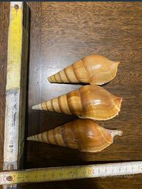Vendo viste e piaciute 3 conchiglie di gasteropodi marini appartenenti al genere Tibia da collezione, per acquario o per decorazioni su tavola, scrivania o mobile. Una ha la punta terminale rotta.