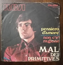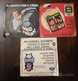 3 Dischi in Vinile 45 Giri:1)Mal dei Primitives,Pensiero d'amore/non c'è Ragione,1969.Rca.1)Massimo Ranieri.Sogno d'amore/Mio caro amore evanescente e puro.Cgd 1970.1)Mino Reitano Daradan/Ho giocato a fare il povero,Ariston Records.1)Vecchia Napoli Orchestra M.Costabile-Piero Nigido.'Na Sera e Maggio/O Surdato' Nnamurat.Fonola N. P. 1449