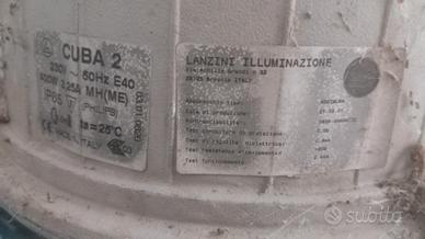 Vendo 3 lampade industriali originali modello CUBA 2 da 400W, prodotte in Italia dalla Lanzini Illuminazione. Ideali per illuminazione di capannoni, garage, stalle, magazzini, oppure per uso decorativo in ambienti in stile vintage/industriale.