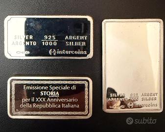 Come da titolo 3 lingottini argento 925 prof peso totale 153 g. Molto belli e di sicura rivalutazione. Accetto solo bonifico bancario o consegna a mano.