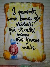 3 vecchie mattonelle da parete con proverbi e detti in buone condizioni senza rotture degli anni 60 . cedesi tutto il lotto . vintage da collezione . pagamento con bonificocbancario - spedizione con pacco ordinario tracciabile a 10,00 €