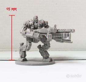 3 miniature in plastica uguali (mini pattuglia). Soldati umani in armatura stile mech. Dimensioni nella foto. ATTENZIONE: basette ovali, non circolari Spedito con Posta1