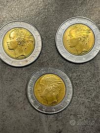 3 monete da 500 lire del 1982