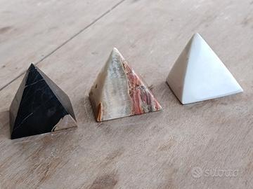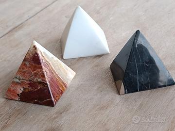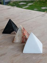 piramidi in marmo nero, alabastro, quarzo bianco misure base cm 5*5, altezza cm 6