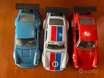 3 modellini di auto Porsche della Burago in scala 1:24.