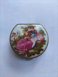 - Una scatolina rotonda con scena romantica dipinta.