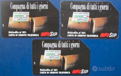 Tre schede telefoniche, usate, della SIP bilingui per la provincia di Bolzano: Compagna di tutti i giorni. Stato delle schede: come da foto.