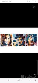 3 magnifiche arazzi in tessuto gobelin senza bordi raffiguranti i volti di 3 miti del passato in fantasia astratta, i disegni non sono ricamati né stampati, ma creati dall'intreccio dei fili che compongono la stoffa. I ritratti dei volti riprodotti negli arazzi che puoi vedere nella prima foto sono, rispettivamente partendo da sinistra: -John Lennon: tra i fondatori e membri dei Beatles, la sua canzone 'Imagine' è una delle più iconiche e famose nella storia della musica pop. La canzone è diventata un inno per la pace e ľ'unità, ispirando generazioni di ascoltatori. -Charlie Chaplin: attore e regista inglese, è uno dei registi più influenti di tutti i tempi. -Jimi Hendrix: unanimemente considerato il più grande chitarrista elettrico di tutti i tempi. MISURE: 45cm x 45cm in cotone misto.