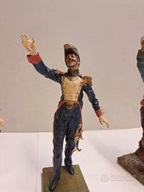 3 statuine di soldati in resina dipinti a mano anni '70 presentano piccole rotture a uno manca la spada che teneva in mano H 20 cm circa (il + alto) zona porta venezia no spedizione