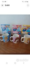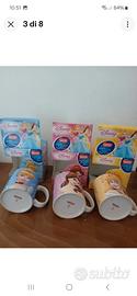 3 tazze originali Disney Princess distribuite da Nestlé, complete delle loro scatole originali.