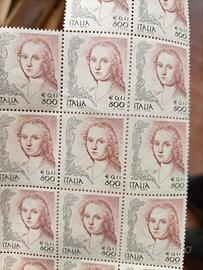 Vendo 30 francobolli Repubblica Italiana del 1998 della serie "Donne nell'arte". Sono da 800 lire, nell'anno successivo inserirono il valore anche in euro. I francobolli hanno tutti la gomma integra e provengono tutti da uno stesso foglio, sono infatti tutti uniti insieme.