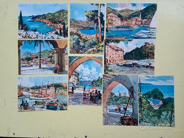 Vendo a 10 euro lotto di 32 cartoline ricavate da acquarelli del pittore Aldo Raimondi (27) e altri (Frattini e Craffonara, 5). Soggetti: Rapallo (9), Portofino (5), S. Margherita Ligure (4), Genova (4), Camogli e Chiavari (1 ciascuno), altre vedute senza indicazione di località (8) A colori, non viaggiate, formato cm. 10,5 x 15 circa. Cartoline a scelta a 50 cent. l'una, in ottime condizioni Più spese postali da definire in base alle tariffe: Posta 1 (3 euro fino a 100 grammi di peso; 5,90 euro oltre i 100 grammi) o Posta 4 o raccomandata Inoltre -- 5 cartoline d'epoca di Rapallo in formato piccolo cm. 8,9 x 13,4 circa, a 1 euro l'una, in ottime condizioni -- a 3 euro lotto di 12 cartoline in b/n della città di Camogli, soggetti: il porto, la spiaggia e i tipici edifici fronte-mare. Non viaggiate, formato cm. 10,5 x 14,8 circa, in buone condizioni -- 25 cartoline moderne della "Collana immagini d'Europa" realizzate da Sailing SpA Torino. Non viaggiate, in ottime condizioni, il lotto a 5 euro Tutti i tipi sono visibili in altri miei annunci su Subito che possono essere trovati cercando "Cartoline" a Rapallo nella categoria Collezionismo Solo in zona Riviera di Levante - Rapallo - Genova centro posso anche scambiare con cartoline analoghe di altre località liguri o dei medesimi pittori