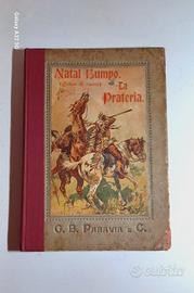Il libro mostrato è un'edizione italiana del romanzo classico diJames Fenimore Cooper, intitolatoLa prateria. L'editore è G.B. Paravia e C., e il titolo riporta anche il nome del protagonista,Natal Bumpo(Nathaniel Bumppo), noto con il soprannome "Calza di cuoio" (Leatherstocking).