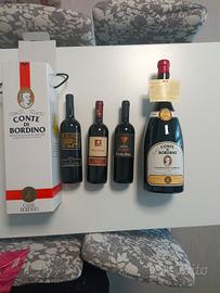 Vendo per inutilizzo lotto esclusivo di 4 bottiglie di vino rosso da collezione, conservate in ambiente idoneo (buio e temperatura costante). Il lotto è composto da pezzi unici per annata e formato, ideali per degustazioni storiche, verticali o come elementi d'arredo per cantine e locali. Il lotto comprende: Montepulciano d’Abruzzo DOC "Conte di Bordino" - Casal Bordino (2008) Formato: Jéroboam (3 Litri) – Doppia Magnum. Dettagli: Bottiglia numerata con sigillo in ceralacca rossa integra e confezione originale a valigetta. Un pezzo di grande impatto visivo. Montepulciano d’Abruzzo "Piane di Maggio" - Agriverde (2008) Formato: 750 ml. Dettagli: Azienda biologica d’eccellenza. Etichetta perfettamente conservata. Merlot Trentino DOC - Cantina d'Isera (2003) Formato: 750 ml. Dettagli: Annata storica "calda", molto interessante per valutare l'evoluzione di un Merlot d'alta quota dopo oltre 20 anni. Montepulciano d’Abruzzo "Pollutri" - Cantine San Nicola (2009) Formato: 750 ml. Dettagli: Classico abruzzese in un'annata di pieno equilibrio. Condizioni: