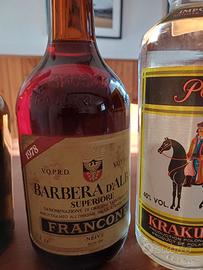 Vendo in blocco lotto di 4 bottiglie vintage originali, perfettamente sigillate e conservate in cantina: Barolo 1969 "Vecchio Maniero" - Marchesi di Barolo. Barbera d'Alba Superiore 1978 - Azienda Francone. Calvados Boulard - Fine Pays d'Auge (40% vol). Vodka Krakus - Importata dalla Polonia (40% vol). Condizioni: Bottiglie integre con capsule e sigilli originali. Solo ritiro a mano a Gussago o Rovato (Brescia
