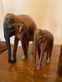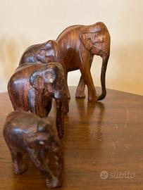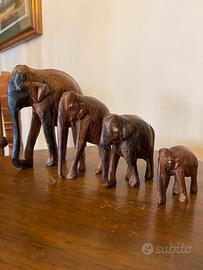 Famiglia di elefanti in legno fatto a mano. 4 pezzi di varie dimensioni