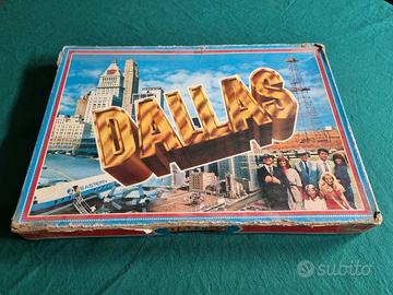 -"Dallas", edito da GiocaDag, è ispirato all'omonimo serial televisivo degli anni '80. Il gioco è completo di tutti i suoi componenti ed è mediamente in discrete condizioni. Mostra però maggiori segni di usura al regolamento e alla scatola (i cui angoli sono tenuti insieme con il nastro adesivo). Posso inviare foto di dettaglio.