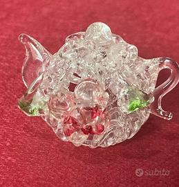Bellissimo set di miniature in vetro di Murano! Il set include tre piccole teiere e una candela, tutte realizzate con un delicato motivo traforato. Sono perfette per collezionisti o per decorare una mensola.